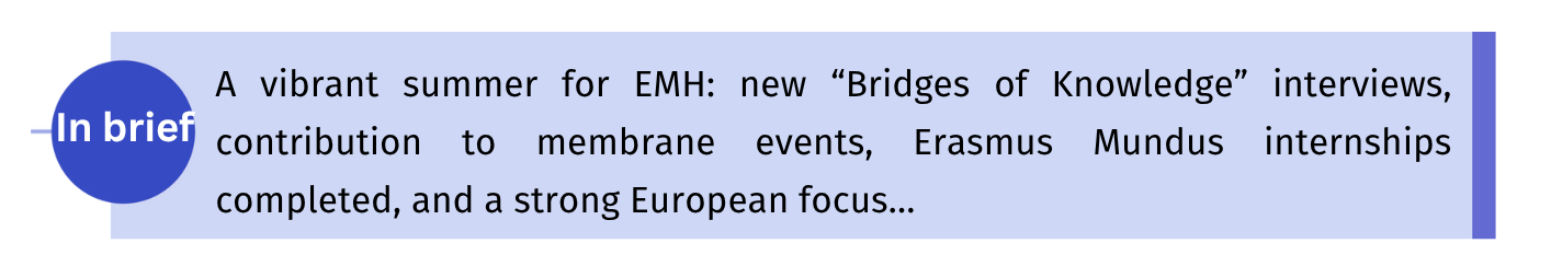A vibrant summer for EMH: new “Bridges of Knowledge” interviews, contribution to membrane events, Erasmus Mundus internships completed, and a strong European focus…